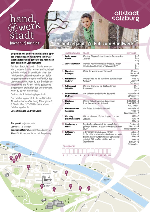 Begib dich mit deiner Familie auf die Spur des traditionellen Handwerks in der Altstadt Salzburg und gehe auf die Jagd nach dem geheimen Lösungswort!