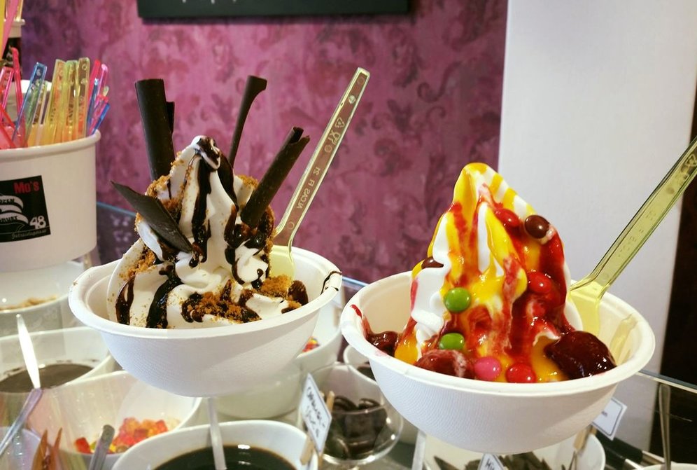 Frozen Bio Joghurt, 30 Toppings, frische Früchte & Saucen bei Mo's