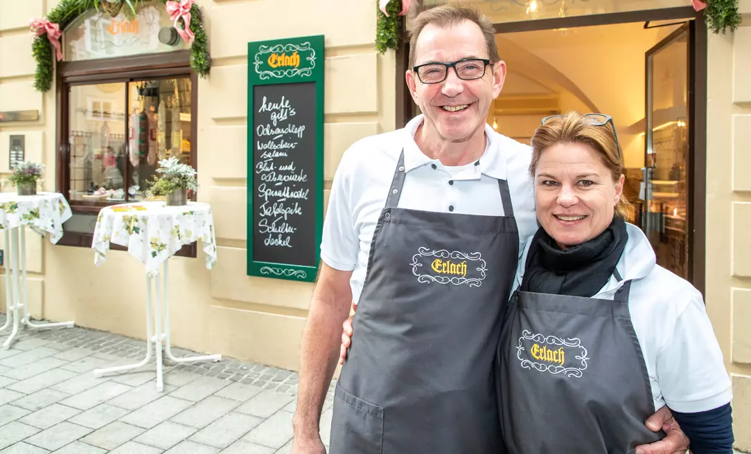 Nach zwei Jahren kreativer Schaffenspause ist wieder eine Filiale der Fleischerei Erlach in die Sigmund-Haffner-Gasse eingezogen. Familie Erlach und Team möchten hier die Kunden mit einem neuen Konzept überzeugen. Das Familienunternehmen setzt dabei nach wie vor auf ein Angebot an Produkten, von dem es vollends überzeugt ist. Gleichzeitig hat es sich aber zur Aufgabe gemacht, die schmackhaftesten Produkte verschiedenster regionaler Betriebe zu finden und in die Salzburger Altstadt zu bringen. Diese Schmankerln bilden das neue Erlach-Sortiment. Das langjährige Team der Fleischerei Erlach freut sich, altbekannte Gesichter und neue Kunden begrüßen zu dürfen.