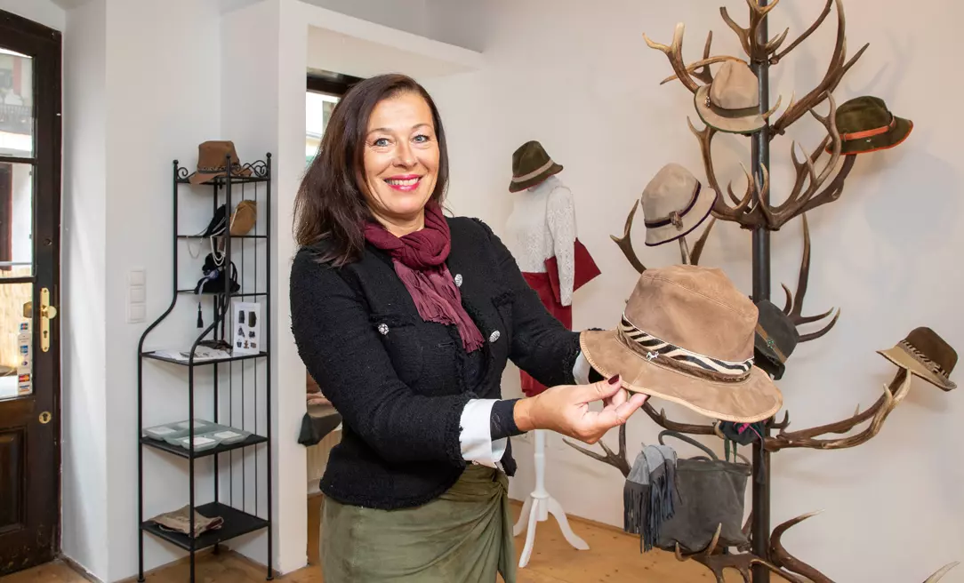 Designerin und Kleidermachermeisterin Gerlinde Schwaiger entwirft und produziert nach eigenen Ideen seit mittlerweile über 12 Jahren Hüte aus feinstem Hirsch- und Ziegenleder. Der GIACO-Lederhut ist ein handgemachtes Naturprodukt für den Alltag und die Jagd sowie für besondere Anlässe. Je nach Wunsch fertigt Gerlinde Schwaiger für ihre Kunden auch die zum Hut passende Tasche sowie Röcke und Dirndl aus Wildleder. Neben dem ausgewählten Fachhandel bietet das Atelier in der Altstadt nun die Möglichkeit, die besonderen Produkte in verschiedenen Farbvariationen zu erwerben.