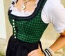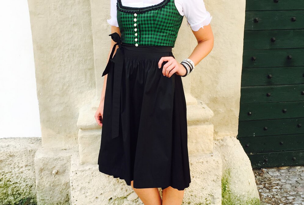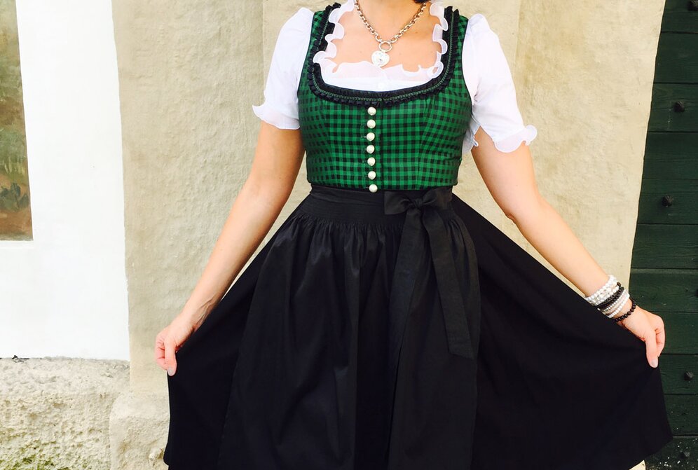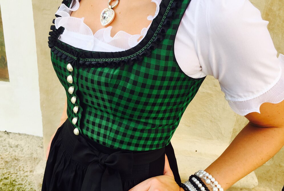 Wer es gerne rockiger mag, der darf heuer ruhig auch mal auf die Farbe schwarz bzw. die Kombination schwarz/grün setzen. Dazu unbedingt eine helle Bluse tragen, damit das Outfit nicht zu finster wird. Der große Modeschmuck dazu lockert das Ganze wieder etwas auf. Süß ist auch die kurze Strickjacke, die an kühlen Abenden warm hält. Absolutes NoGo sind Dirndl mit Totenköpfen, Blitzen oder Nieten – hier wirklich lieber auf die Karo-Variante setzen.