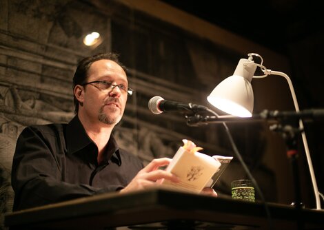 Schauspieler Sascha Oskar Weis liest aus dem Buch von Wolfram Siebeck
