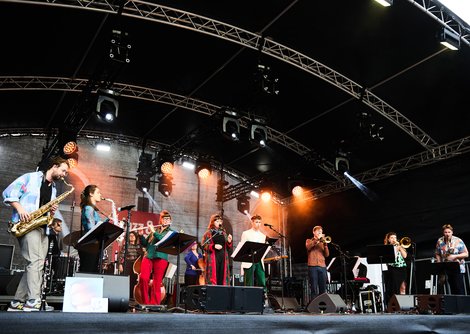 Die Szene beherbergte so unterschiedliche Formationen wie das französisch-kroatische Klavier-Schlagzeug-Duo Obradovic-Tixier und David Helbocks Austrian Syndicate, der brasilianischen Tastenvirtuose Amaro Freitas wie auch die estnische Sängerin Kadri Voorand berauschten nicht nur mit Musikalität und perfekter Technik, sondern auch mit großer Herzenswärme und einer im wahrsten Sinne ansteckenden Freude am Musizieren. Das französische Frauentrio Nout bewies beim letzten Konzert in der Szene, dass Harfe, Flöte und Schlagzeug keine Lieblichkeit bedeuten müssen, sondern einen wahren Sturm entfachen können: grenzenlose Begeisterung des Publikums war die Folge.