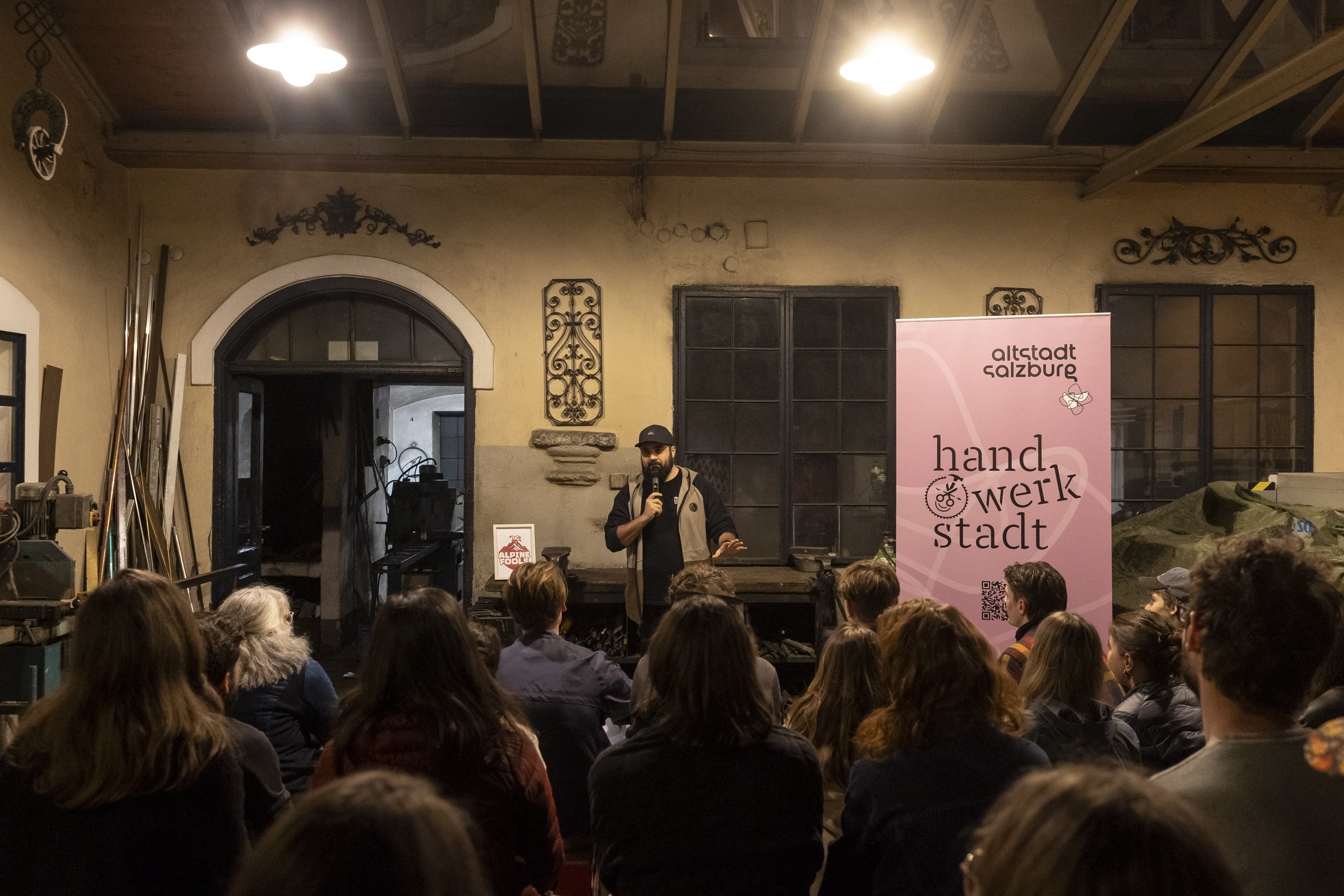 Funken in Form von unterhaltsamen Pointen flogen in der Schlosserei Wieber, wo beim Auftritt der ersten englischsprachigen Stand-up Comedy Truppe Alpine Fools „Handwerk auf Mundwerk“ traf.