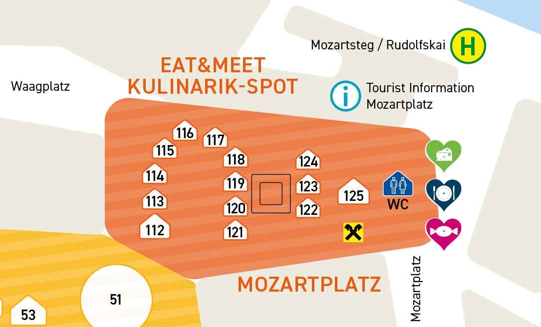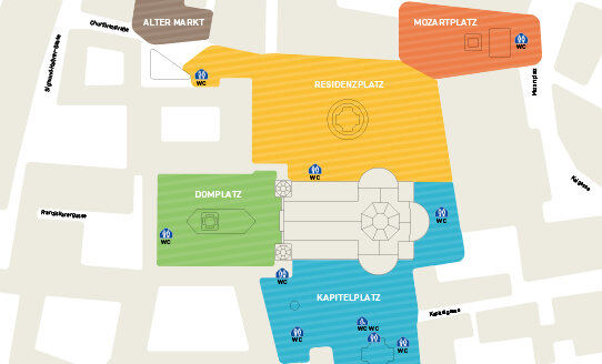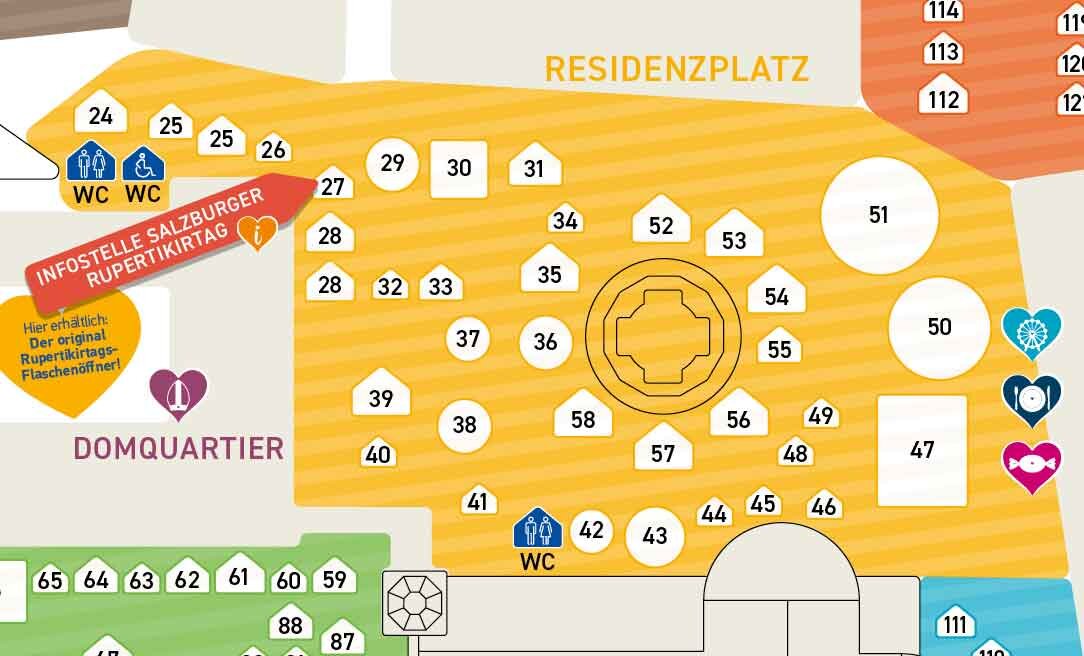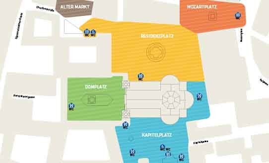 Auf unserem Plan haben wir alle Toiletten am Salzburger Rupertikirtag eingezeichnet. Pro Toilettengang wird eine Gebühr von € 0,50 verrechnet.