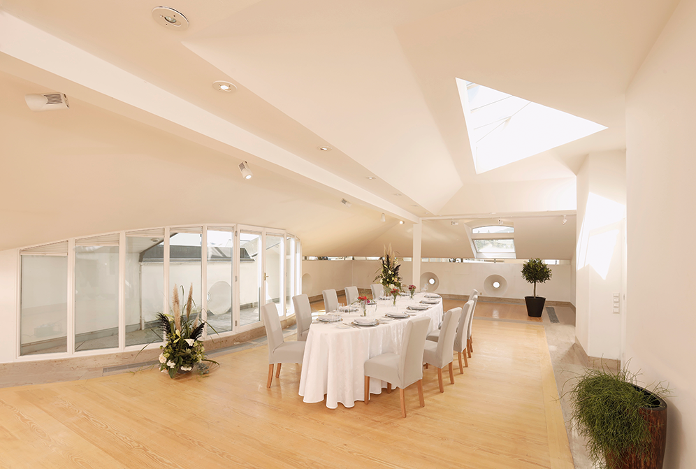 Besprechungszimmer mit Dachschrägen und Dachfenstern.  | © B10