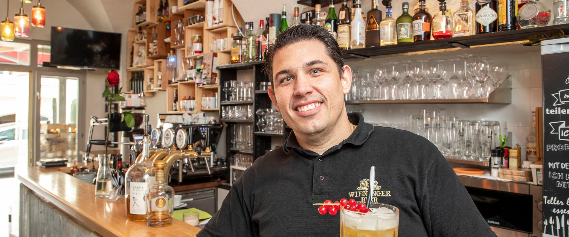 Das kleine und bunte Lokal in der Linzer Gasse ist der ideale Ort für einen entspannten Feierabend, für (Geburtstags-)Partys oder um ganz einfach die Zeit bei einem Drink und kleinen Köstlichkeiten zu genießen. Die Gastgeber üben ihre Leidenschaft für die Gastronomie bereits seit 15 Jahren aus und haben schon in den unterschiedlichsten Ländern gearbeitet. Und das spiegelt sich auch in der Speisen- und Getränkekarte wider: So können sich die Gäste, neben ausgewählten Bieren und italienischen Weinen, mit altem venezolanischem Rum, exotischen Cocktails und kalten Platten verwöhnen lassen.