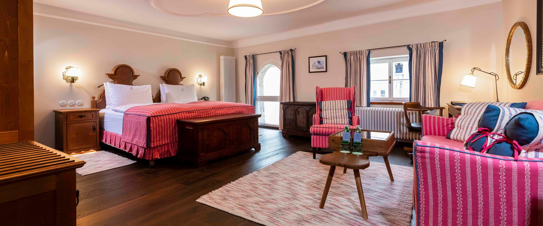 Romantische Winkel, antike Möbel, kunstvolle Holzdecken und stolze Jagdtrophäen prägen das stilvolle, gediegene Ambiente. Ein ganz besonderes Haus, das seine Gäste mit persönlicher, herzlicher Atmosphäre, viel Komfort und hervorragender Gastronomie verwöhnt. Der Charme der Vergangenheit verbunden mit höchstem, zeitgemäßem Komfort.