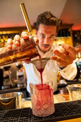Das Ambiente bewegt sich zwischen edler Speakeasy-Atmosphäre und American Cocktail Bar. Die ausgezeichnete Beratung des Teams erleichtert die Wahl des passenden Getränks und ebnet den Weg für einen entspannten Abend mit guten Gesprächen. Geschäftsführer Patric Roth: »Wichtig ist, dem Gast zuzuhören. Wie möchte er seinen Drink haben, etwa bei Martinis.