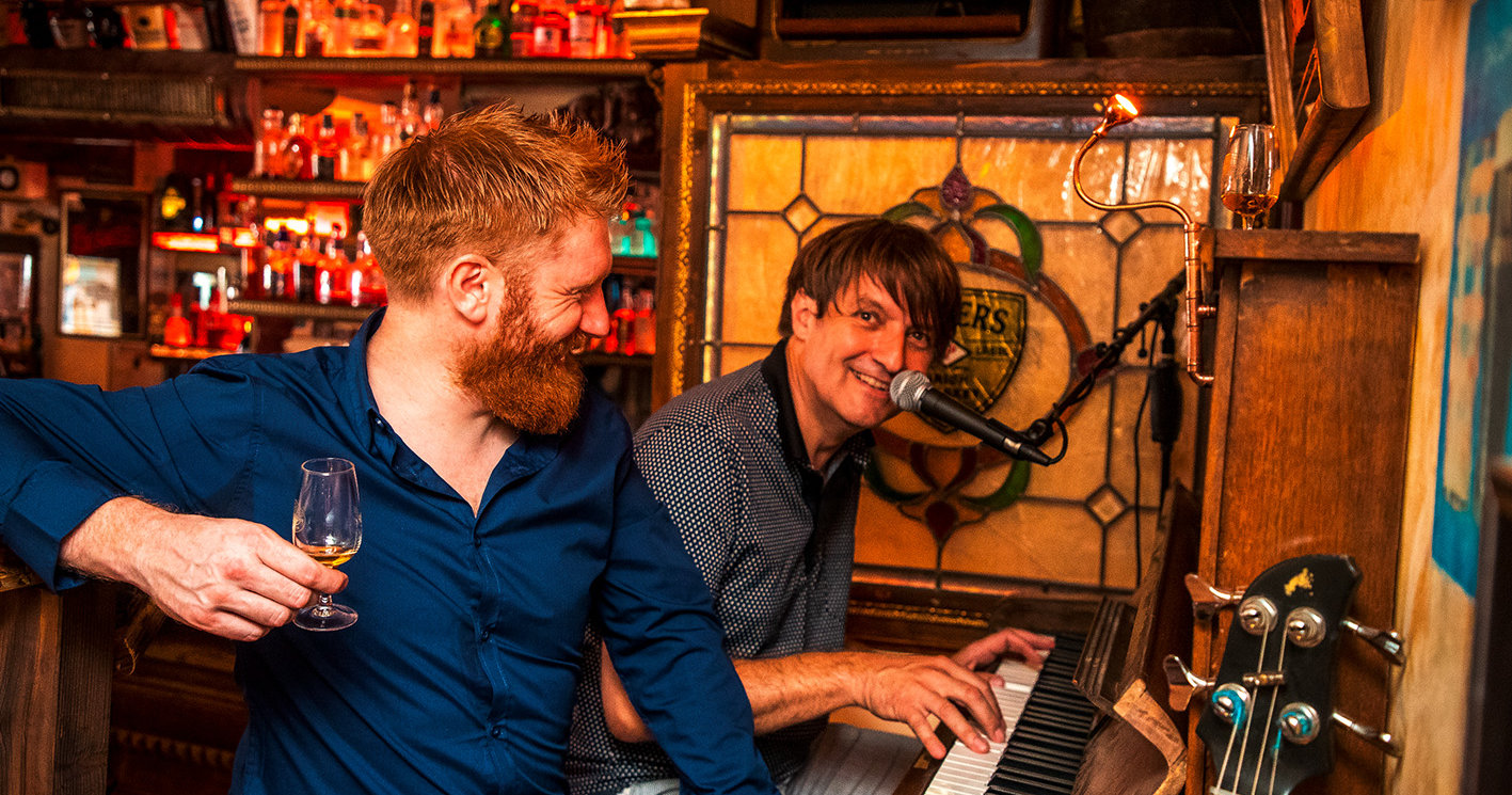 Im oberen Bereich der Bar, mit gedämpftem Licht und gemütlichen Couchecken, veranstaltet er auch buchbare Whiskeyverkostungen, bei denen zu jedem Getränk historische Fakten und Anekdoten vom Hausherrn persönlich geboten werden. Zum Abschluss setzt sich Stootsie noch an das alte Piano an der Wand und spielt für uns die letzten Takte dieses denkwürdigen Tages, während wir noch einen Schluck »Writer’s Tears« Whiskey genießen.