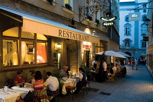 Wie der Name schon sagt, serviert das Restaurant S'Nockerl im Hotel Elefant original Salzburger Nockerl sowie österreichische Spezialitäten - im Sommer auch in der charmanten Sigmund-Haffner-Gasse vor dem Restaurant.