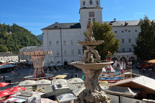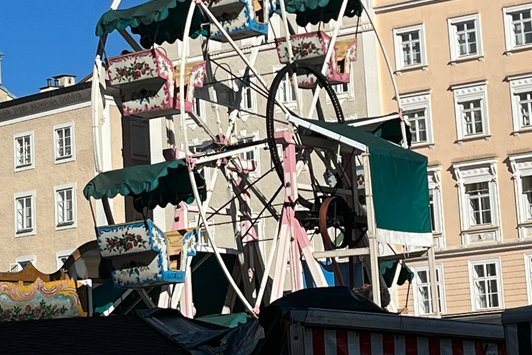 Jedes Jahr begeistert der Salzburger Rupertikirtag zahlreiche Besucher:innen von nah und fern. Genauso traditionell wie die Tage rund um den 24. September, den Namenstag unseres Salzburger Landespatrons Rupert, gefeiert werden, gehören auch traditionelle, historische Fahrgeschäfte dazu. Eines davon ist das Nostalgie-Riesenrad neben dem Residenzbrunnen, das seit Jahren Groß und Klein erfreut. Vom Riesenrad hat man nicht nur die beste Aussicht über den Salzburger Rupertikirtag, sondern es gibt auch eine ganz besondere Geschichte dahinter. Walter Gschwandtner von der Ausstellerfamilie erzählt sie uns.