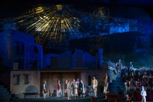 Das archaiische Bühnenbild von Dietmar Solt im Festspielhaus könnte durchaus auch mit dem biblischen Bergland von Judäa verglichen werden. „Ein kahler Baumstumpf als letztes Zeichen von Vegetation ist auch als Symbol von Stille und Einsamkeit zu verstehen. Heuer steht uns viel Schnitz- und Kaschierarbeit bevor, weil viele Steine naturgetreu ausgearbeitet werden müssen. Die Tischlerei Laserer aus Gosau bietet uns optimale Bedingungen. Dort kann in einer Riesenhalle alles in einem bearbeitet werden“, so Solt.