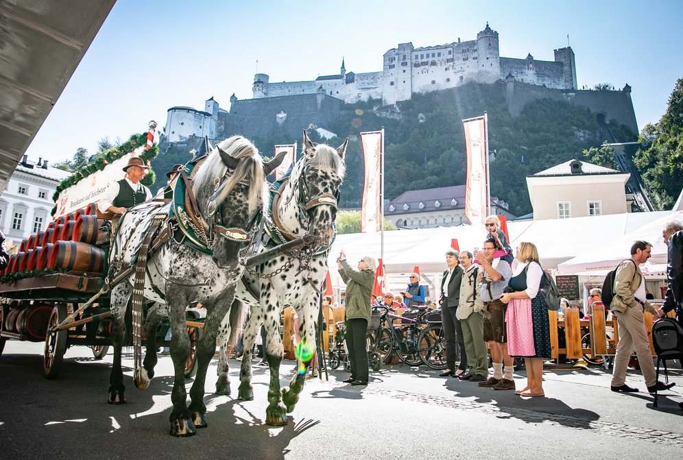 Bunte Trachten, tolle Flechtfrisuren, lachende Gesichter, Lebkuchenherzen mit frechen Sprüchen, der Duft nach süßen Schaumrollen, die Geräuschkulisse von Kettenkarussell und Geisterbahn, die Klänge der Musikkapellen, die zum Tanzen einladen und dazwischen der Salzburger Hanswurst, der nicht nur Kinderaugen zum Leuchten bringt – der Salzburger Rupertikirtag ist jedes Jahr aufs Neue ein Fixpunkt im Veranstaltungskalender der Salzburger und aller Brauchtumsliebhaber.