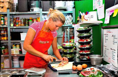 www.mangoes.at"Fresh food for smart people" verspricht mangoes in der Pfeifergasse: Mittags gibt es frische Suppen, Salate, Sandwiches, Baguettes, Wraps, Burger, Currys und Eintöpfe, die zum Großteil vegetarisch oder vegan sind oder dazu abgewandelt werden können. Die frischen Speisen gibt es auch zum Mitnehmen oder als Lieferung nach Hause!
