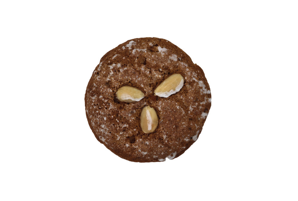 Delikat gefüllter Lebkuchen mit feinstem Nougat und etwas Ribiselmarmelade, mit gerösteten Mandelstiften bestreut, kandiert und mit zweierlei Schokolade handverziert.