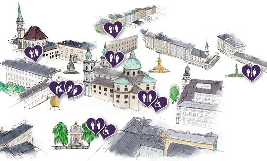 Auf unserem Plan haben wir alle Toiletten am Salzburger Rupertikirtag eingezeichnet. Pro Toilettengang wird eine Gebühr von € 0,50 verrechnet.