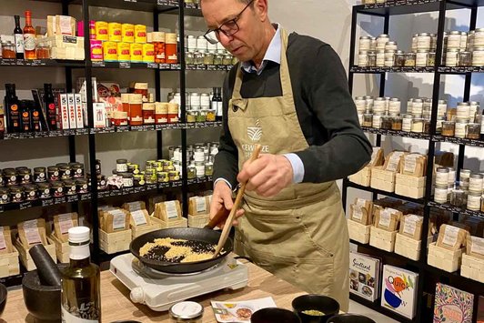 In Salzburg führt Christoph Wein den Laden. Mit Interessierten bereitet er am 8. März eine Gewürzmischung zu. „An dem Tag werden wir vor Ort Gewürze rösten und bei schönem Wetter und offener Tür die Kaigasse in ein Duftparadies verwandeln“, so Wein. Er nimmt sich auch gerne Zeit für eine ausführliche Beratung. Denn gerade bei Gewürzen, die in der mitteleuropäischen Küche nicht üblich sind, sollte man wissen, wofür man sie verwenden kann.