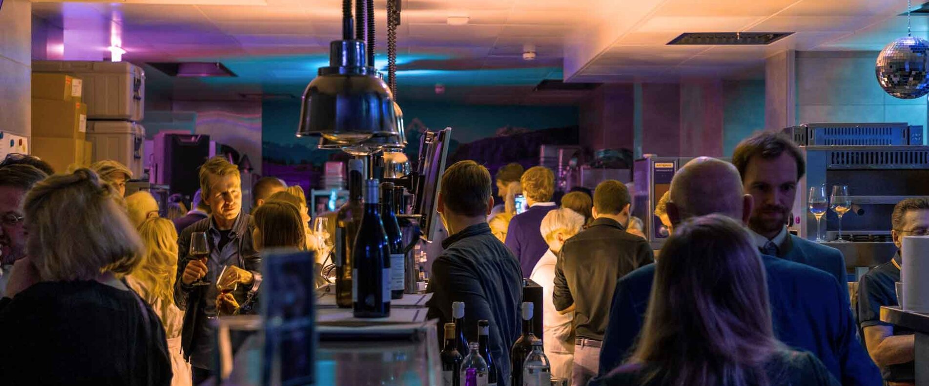 Die Gäste nehmen an der Long Drink Bar den farblich passenden Aperitif ein, bevor sie sich auf den Weg in die Küche machen. Dort erleben sie hautnah mit, wie es in einer Gourmetküche zugeht und kosten sich durch die verschiedenen Kreationen des Küchenteams.