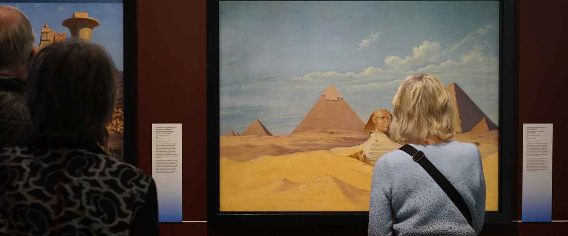 Hubert Sattlers Grafiken und großformatige Kosmoramen geben Einblick in seine vielfältigen Reisen durch Europa, den Vorderen Orient und Nordamerika. Sie zeigen malerische Ansichten von Gotteshäusern unterschiedlichster Konfessionen von der Antike bis ins 19. Jahrhundert.