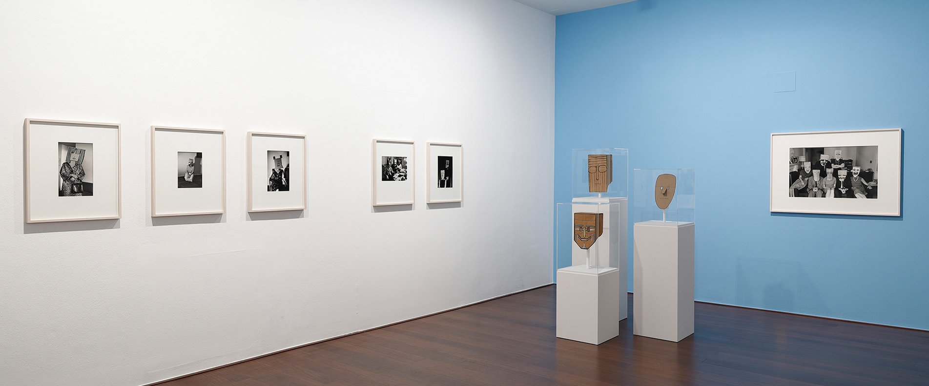 Anslässlich des 100. Geburtstags der österreichischen Fotografin Inge Morath (1923 Graz, AT – 2002 New York, NY, US) präsentiert die Ausstellung Vintage-Prints aus der Serie „Masken". Diese Werkgruppe entstand in Zzusammenarbeit mit dem Zeichner Saul Steinberg (1914 Râmnicu Sărat, RO – 1999 New York, NY, US), den Morath im Jahr 1959 erstmals besuchte und porträtierte. Bei dieser Begegnung trug Steinberg eine Papiermaske mit einem aufgezeichneten Selbstporträt. In der Ausstellung sind einige der Originalmasken, die das Museum der Moderne als Schenkung erhalten hat, erstmals zusammen mit den Fotografien von Morath, die zwischen 1959 und 1962 entstanden, zu sehen. Diese künstlerische Kooperation von Morath und Steinberg gilt als eine der interessantesten zwischen einem Zeichner und einer Fotografin; sie markierte zudem den Beginn einer lange anhaltenden Freundschaft. Steinberg kreierte auf Papiertüten weiter ganz unterschiedliche Charaktäre, die durch durch die Fotografien von Morath berühmt wurden.