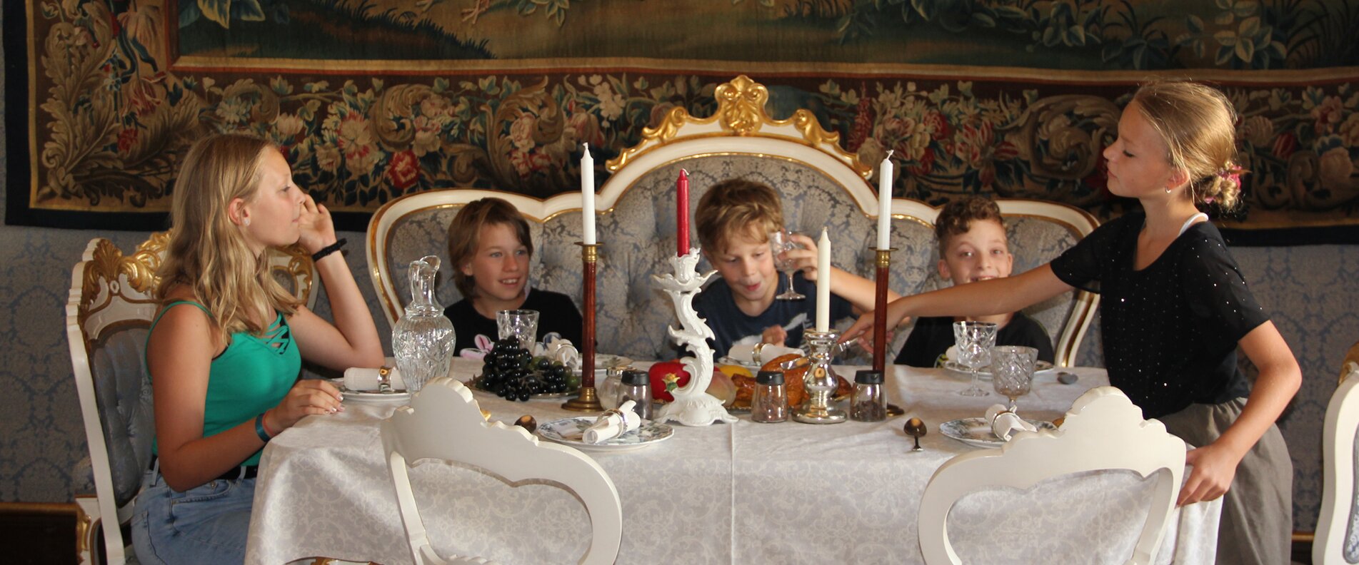 Die Tafeln waren aufwändig gedeckt mit prunkvollen Gläsern, glänzend polierten Kelchen und hübsch bemalten Schüsseln.