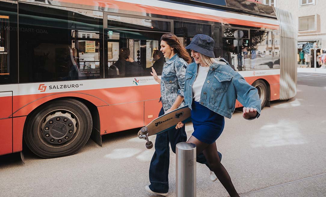 In around 100 participating businesses, you’ll receive a Shopping Bus-Ticket, with which you can return home free of charge. (The campaign may be subject to a minimum purchase value and applies to the central area of Salzburg). Look for the Shopping Bus-Ticket sticker at the shops or ask for the bus ticket at the ticket office.