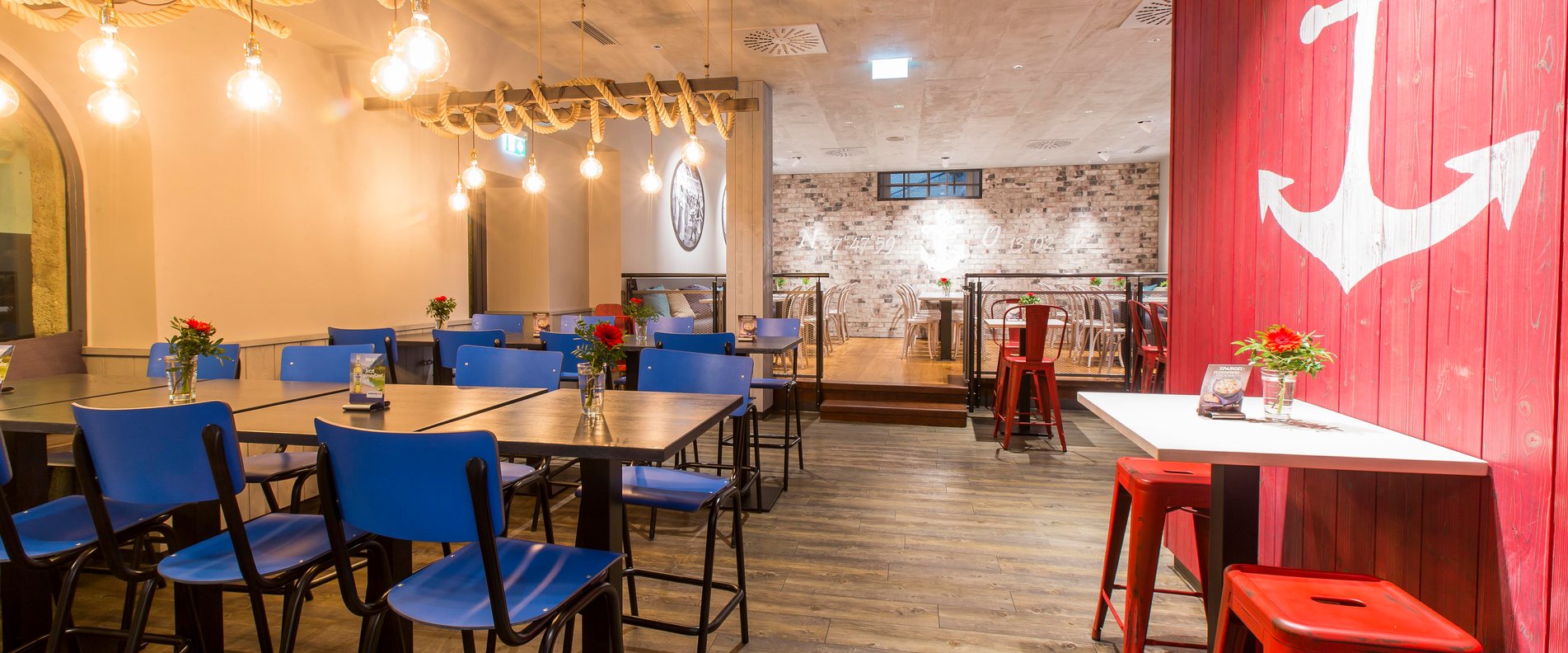 Enjoy a variety of fresh and natural fish dishes, crunchy salads or delicious sushi in a maritime atmosphere. For a quick snack between meals, you can choose from a wide range of cold and hot snacks.